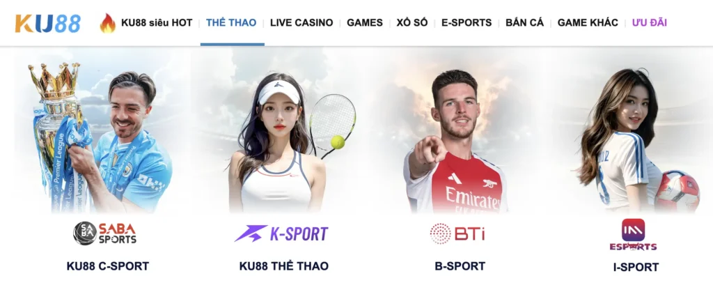 Kubet tự hào là nhà cái cung cấp dịch vụ cá cược thể thao hàng đầu. Bạn có thể tham gia đặt cược vào các giải đấu bóng đá lớn như Ngoại hạng Anh, La Liga, Champions League… Ngoài ra, các môn thể thao khác như bóng rổ, quần vợt, cầu lông cũng được cập nhật kèo thường xuyên.